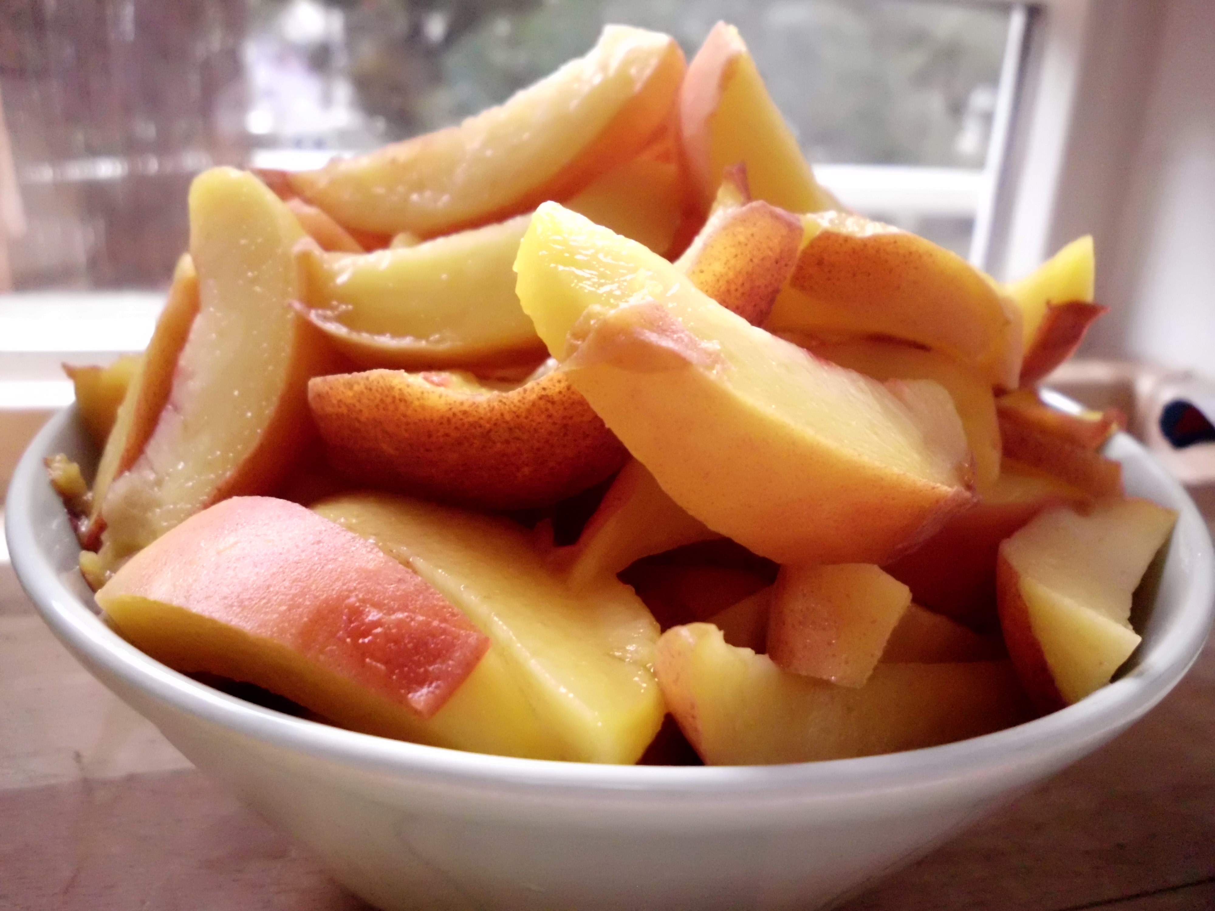 - Hecha varias cucharadas de azúcar sobre el melocotón.