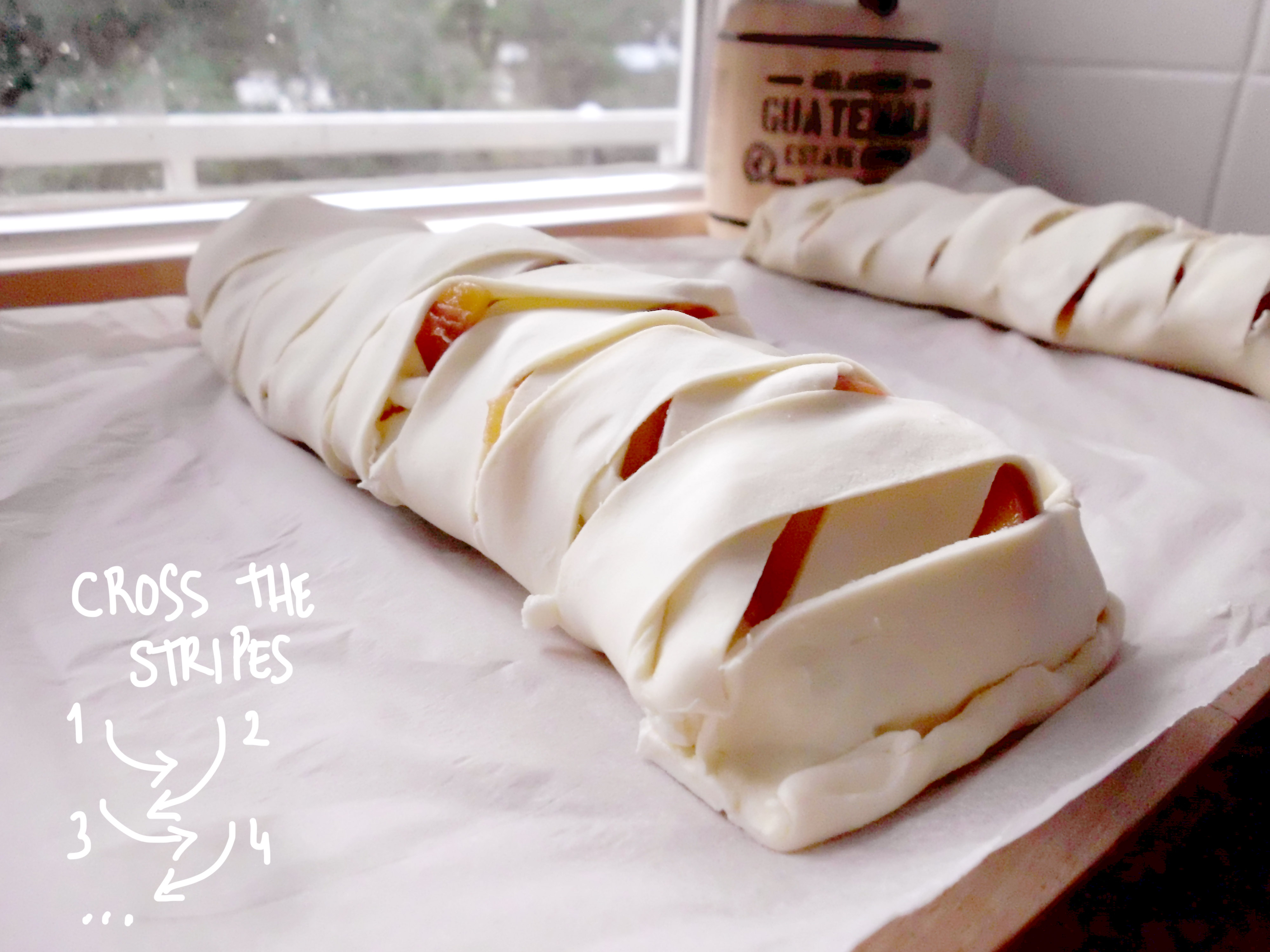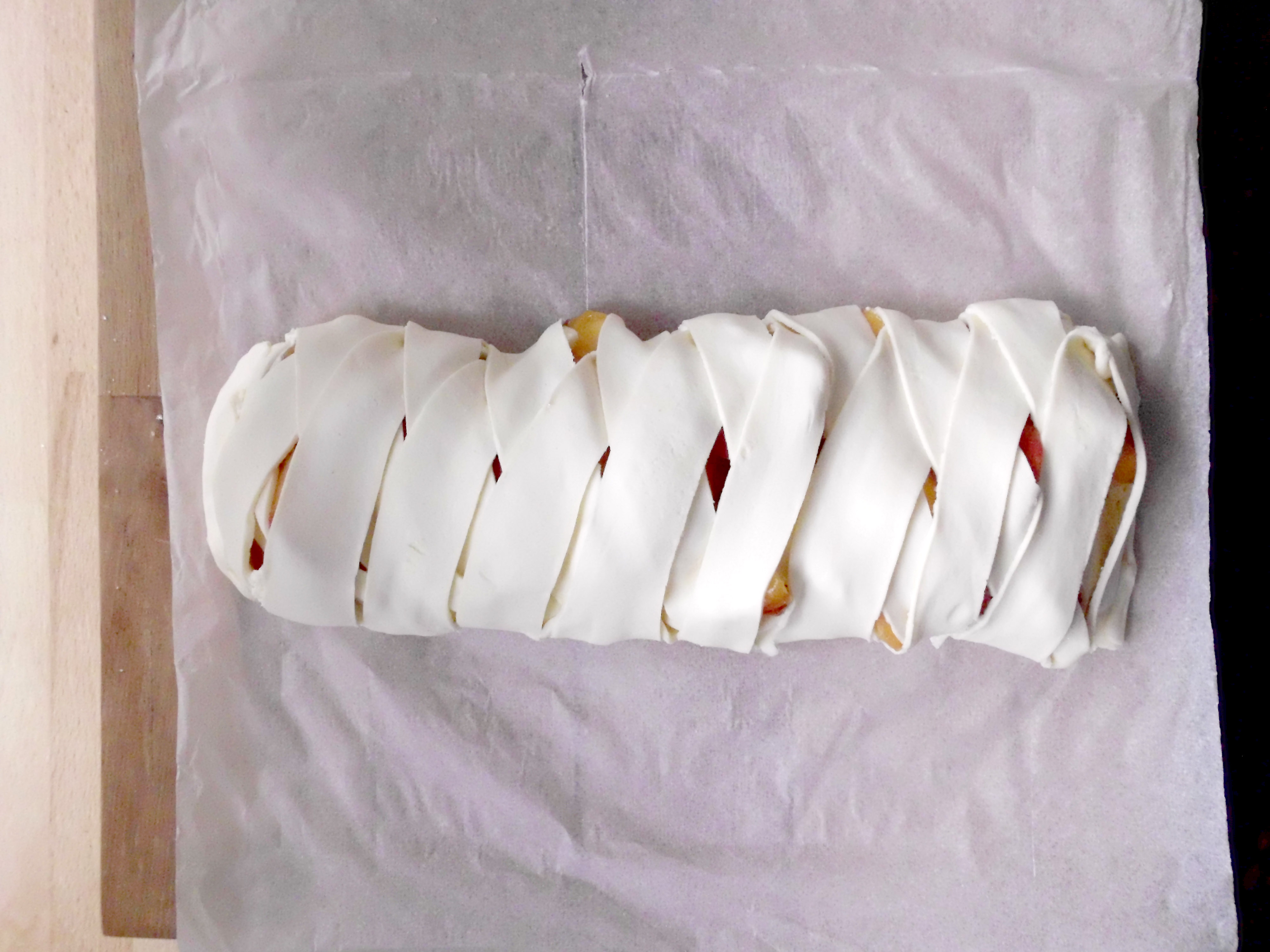 - To do the braid: Cross every time a strip of dough from a different side (Right-Left-Right-Left).