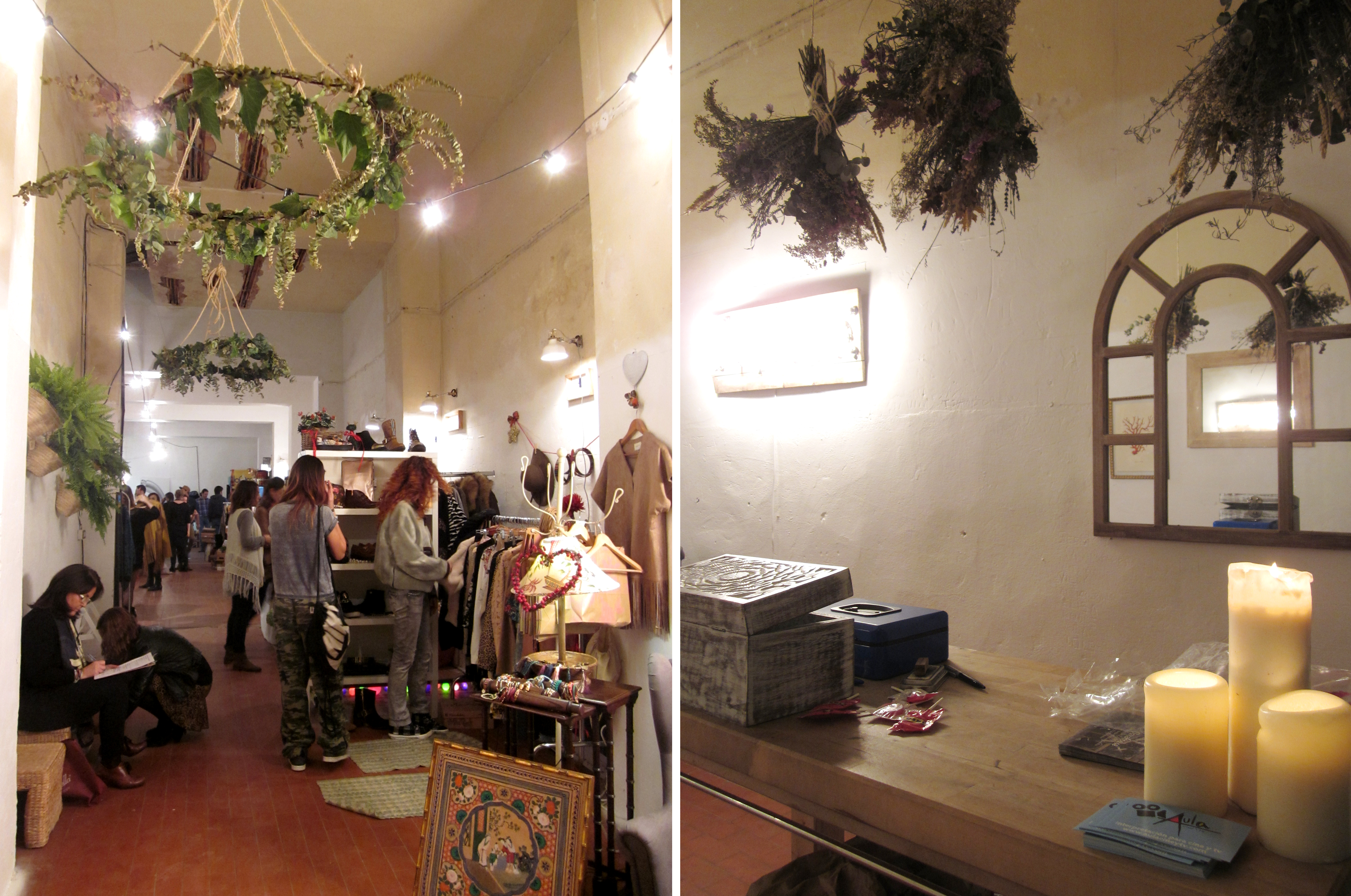 Metros y metros de cable con bombillas adornaban los altos techos del taller donde exponían todas las tiendas participantes. Moda, complementos, gafas vintage, decoración… Todo junto una buena selección de música creaba un ambiente perfecto para pasar horas y horas allí dentro.