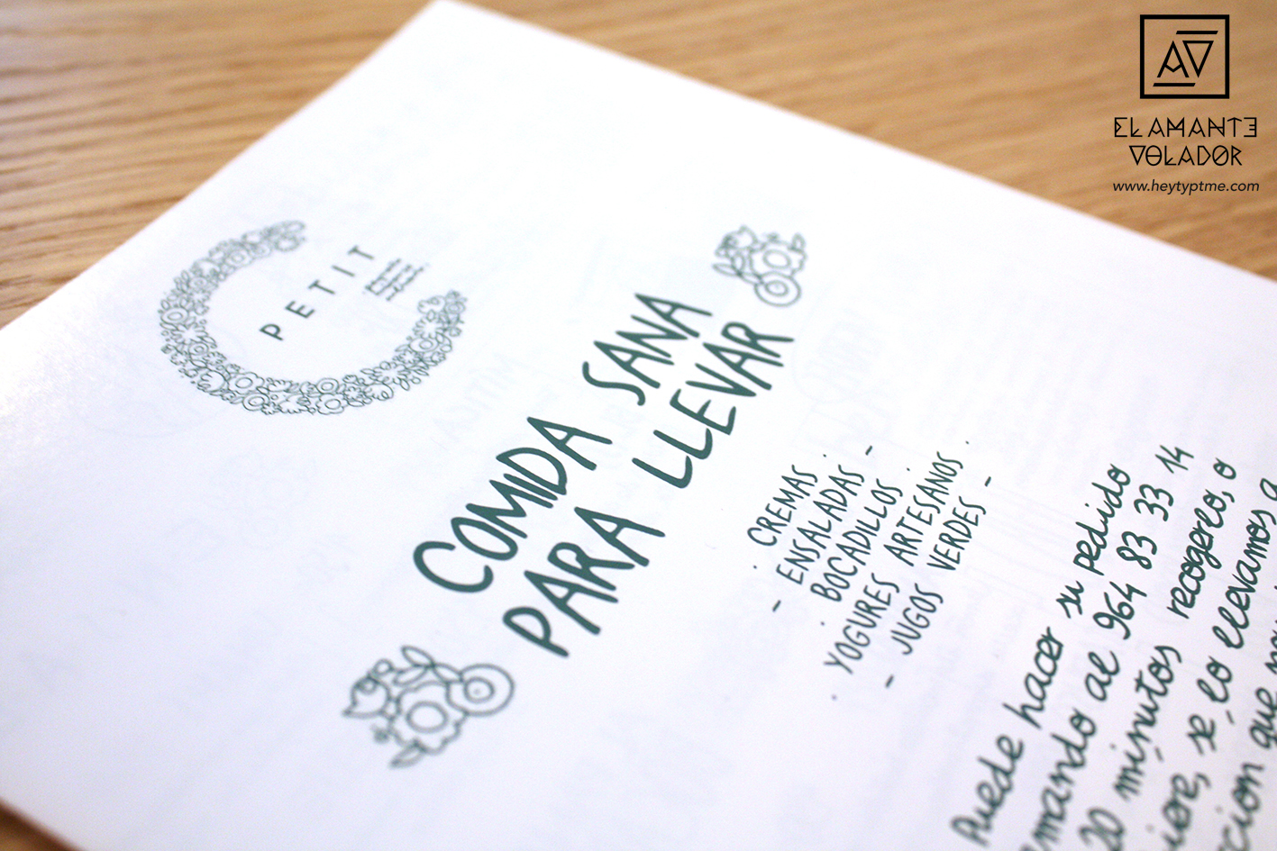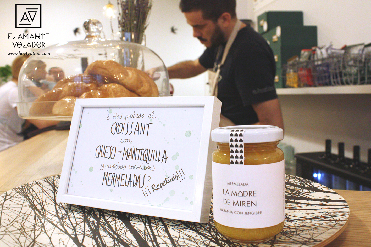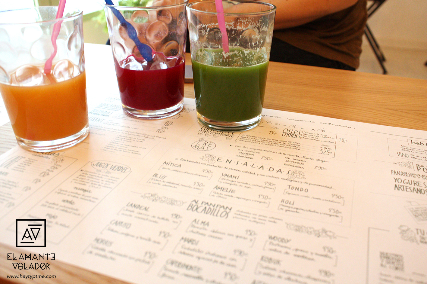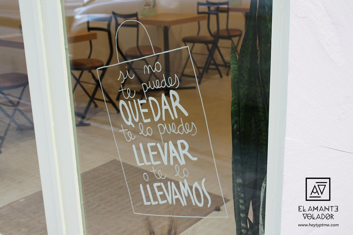 Tanto la carta, el gran panel de detrás de la barra y los letterings de las puertas están escritos a mano por Ana. Ella misma escribió a mano uno a uno cada unos de los productos y dibujos que aparecen en la carta.