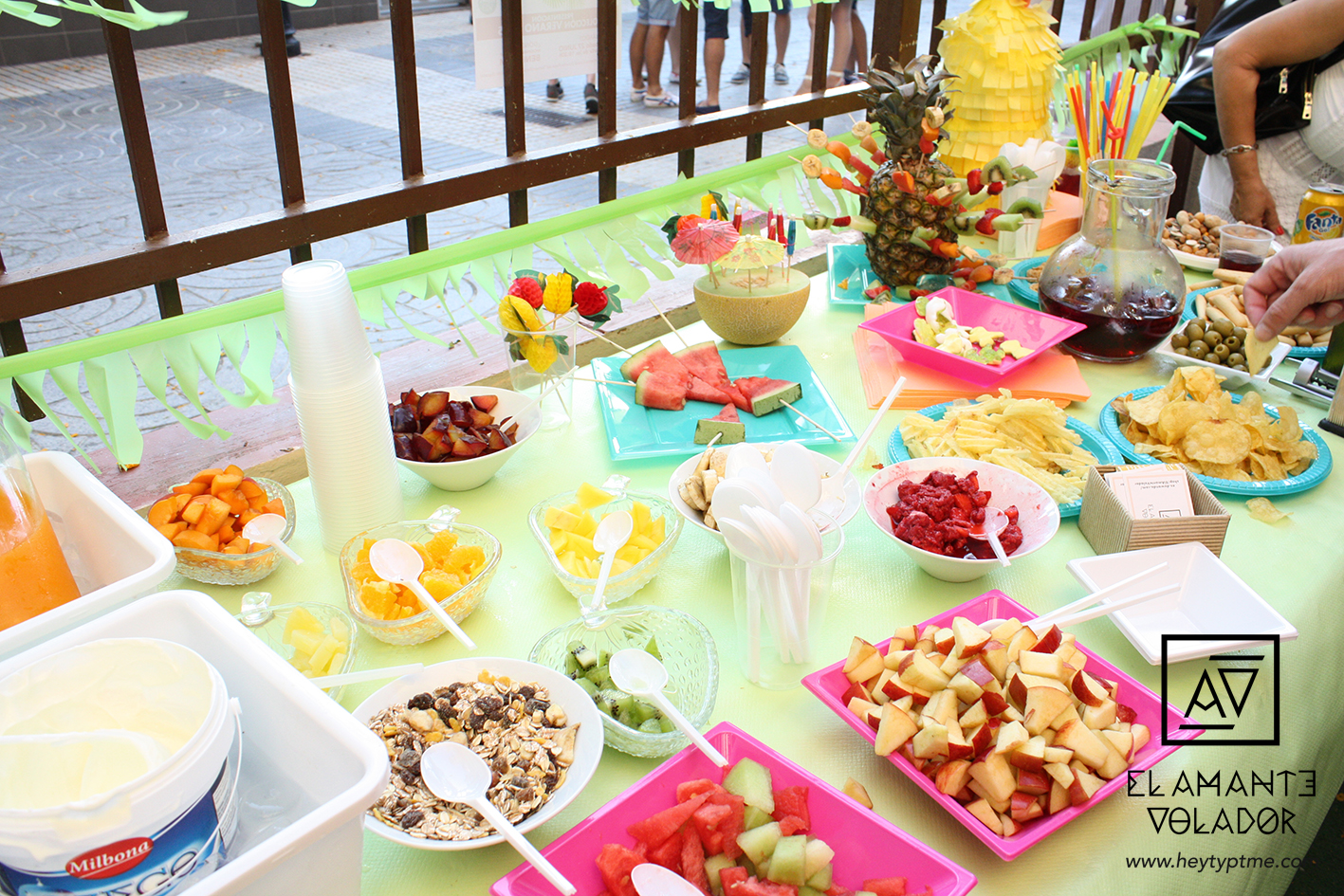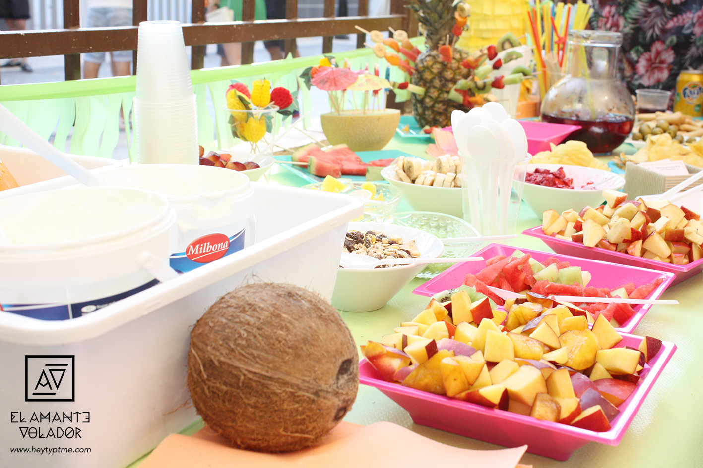 No pudimos elegir un mejor fin de semana para hacer una fiesta tropical, el más caluroso (y con diferencia) de lo que llevamos de verano. Casi nos achicharramos montando todos los preparativos de la fiesta, pero sin duda valió la pena.