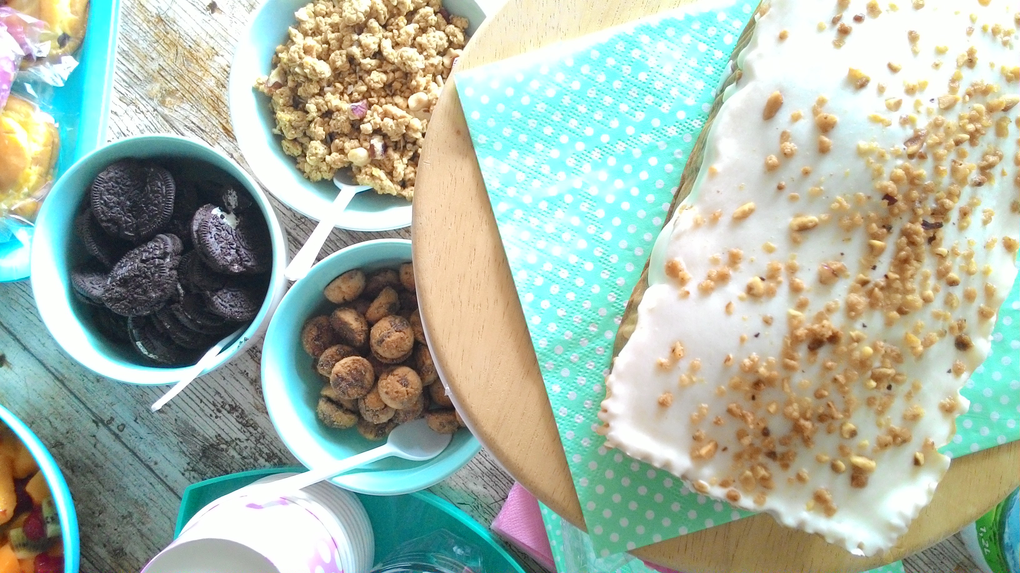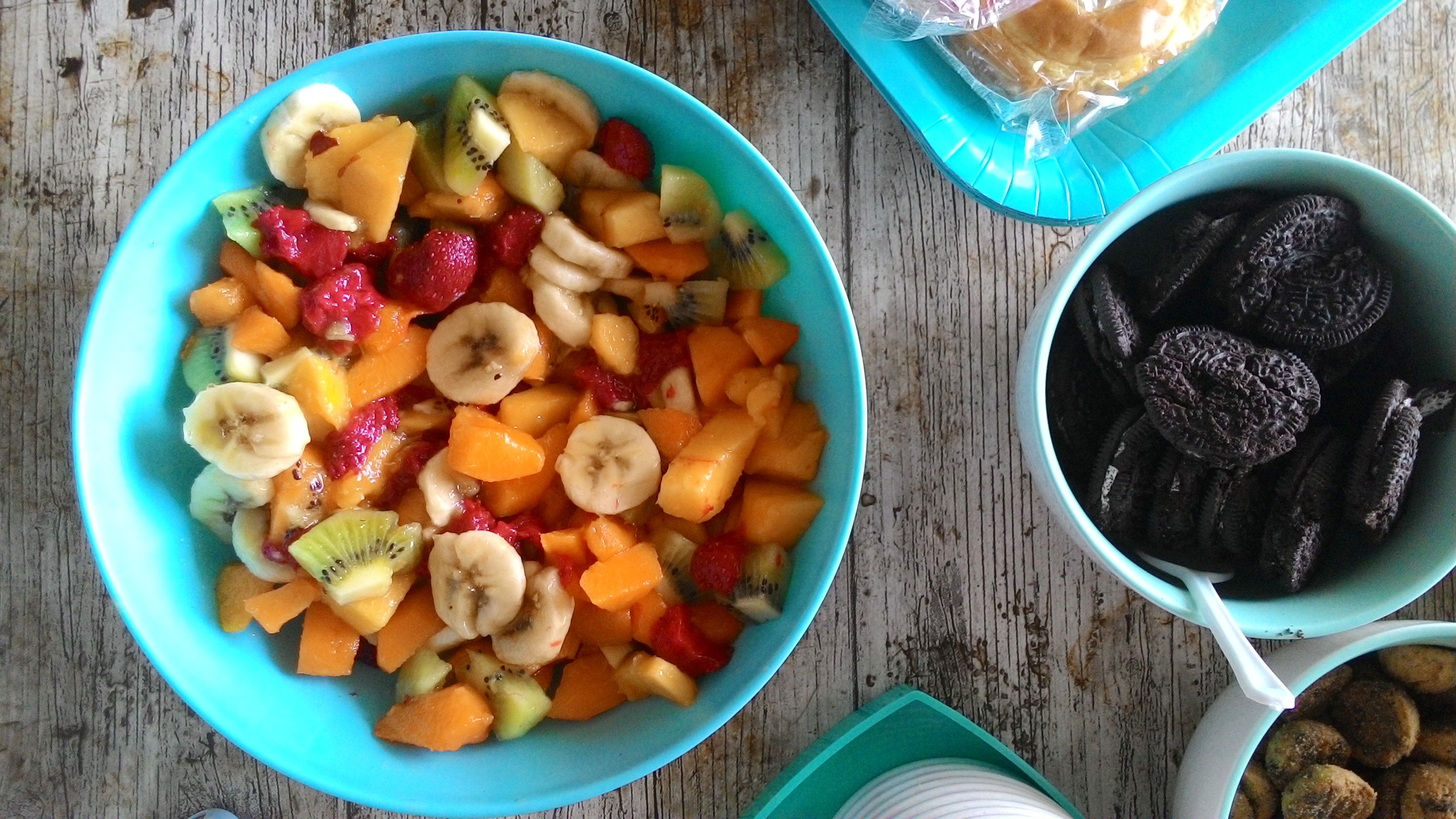 Esta vez Carla decidió poner fruta troceada, galletas oreo, muesli, galletas chips… Todo un exito.