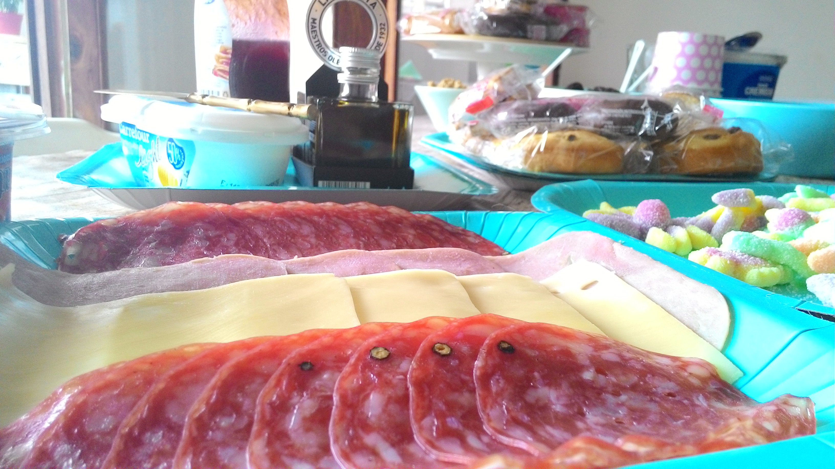 Para almorzar se preparó un buffet con un montón de cosas buenas y una zona de cafe e infusiones.