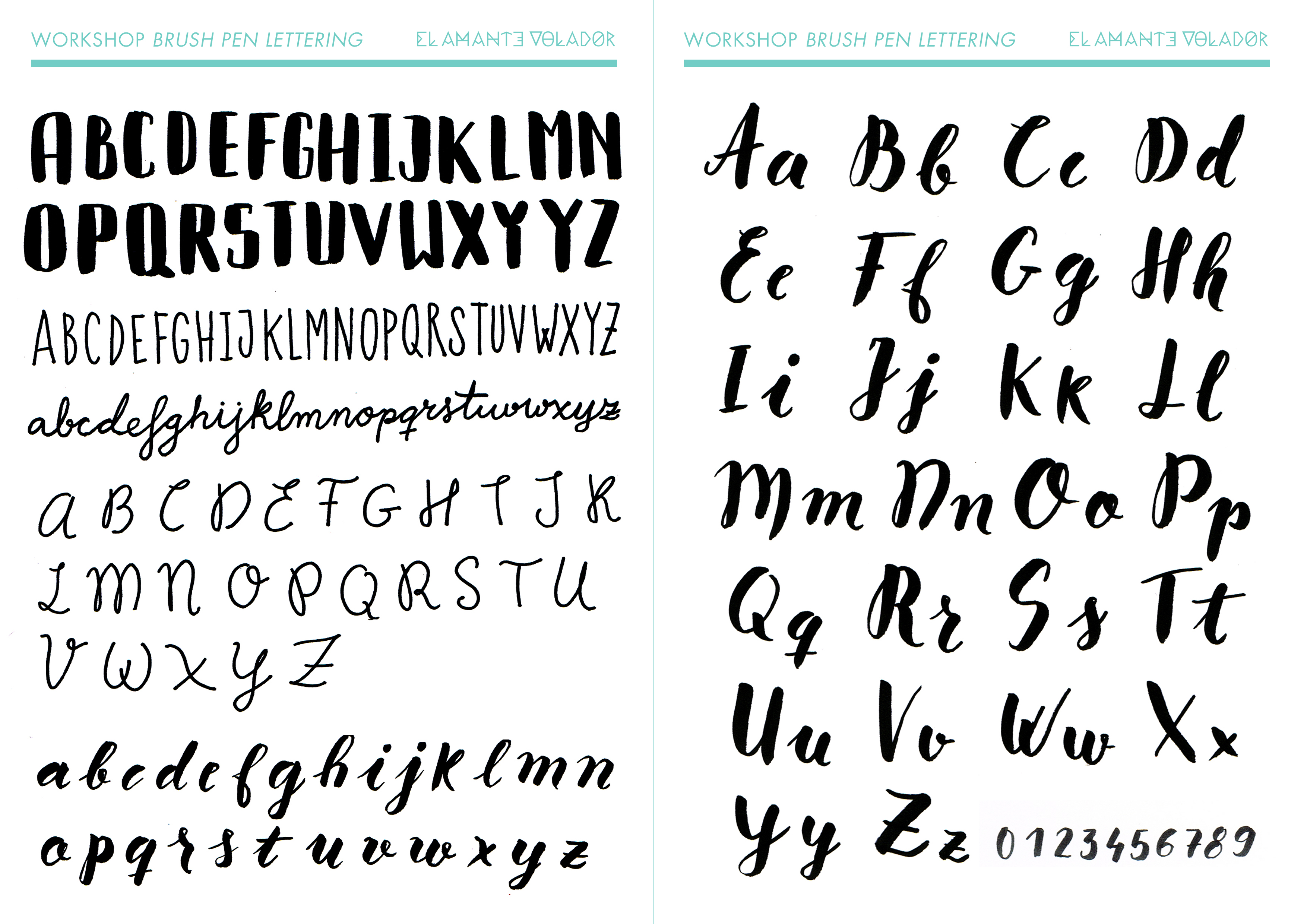 Ejemplos de diferentes tipografías hechas con un mismo rotulador brush pen.