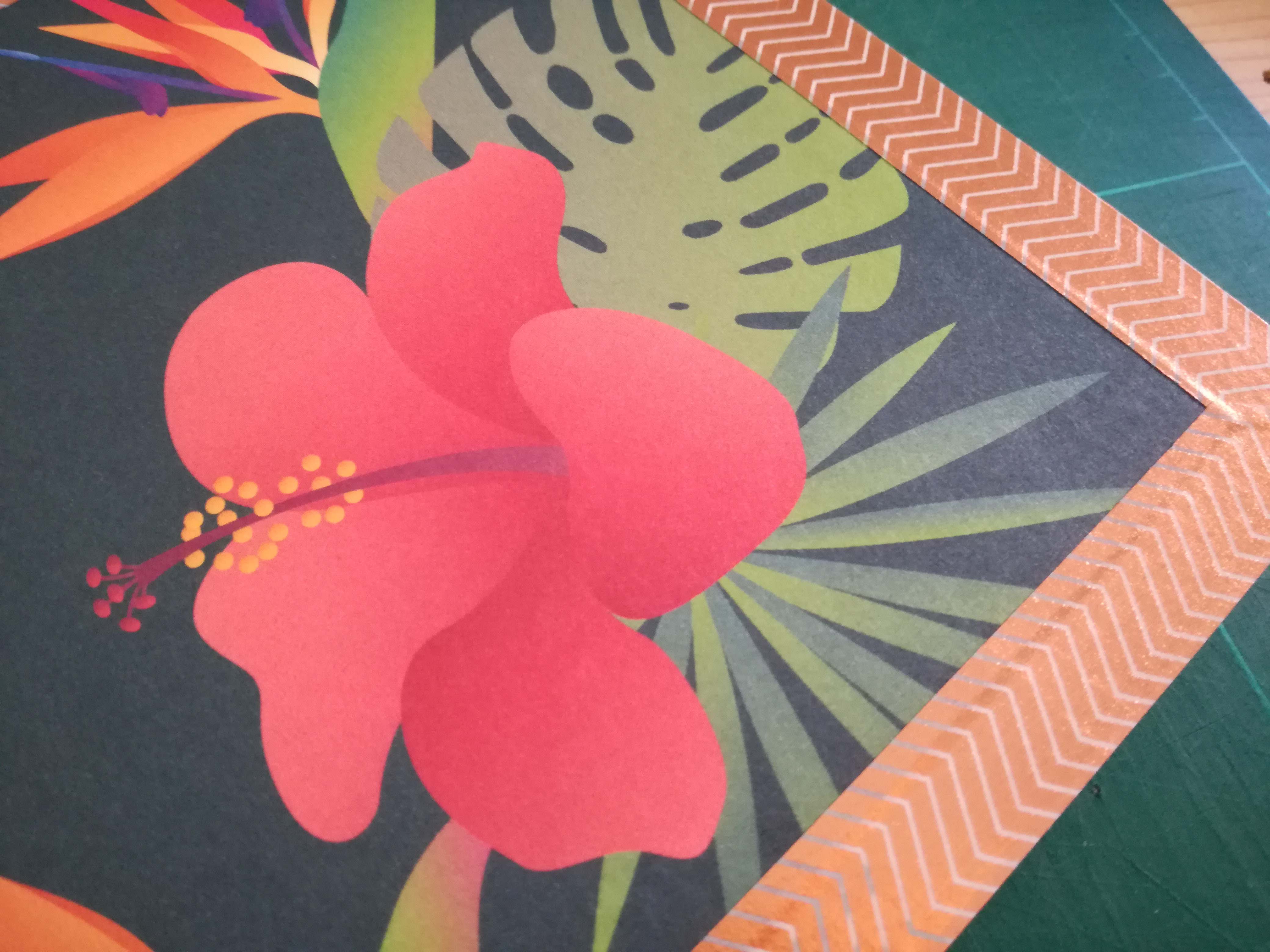 - Papel Opitec – geométrico para el interior y con ilustración tropical para la portada