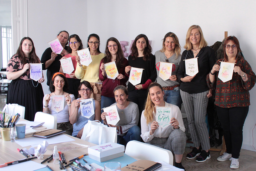 No es el típico taller de lettering, sino que los asistentes, que podían tener o no nivel previo, disfrutaron de un brunch creativo en el que aprendieron y compartieron sus técnicas y trabajos.
