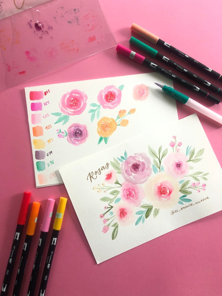 Es un tutorial muy fácil y sencillo, con el que crearás fondos de acuarela, y una vez secos puedes decorar con lettering o ilustraciones creadas con rotuladores finos (fine tip) o brush pens pequeños.