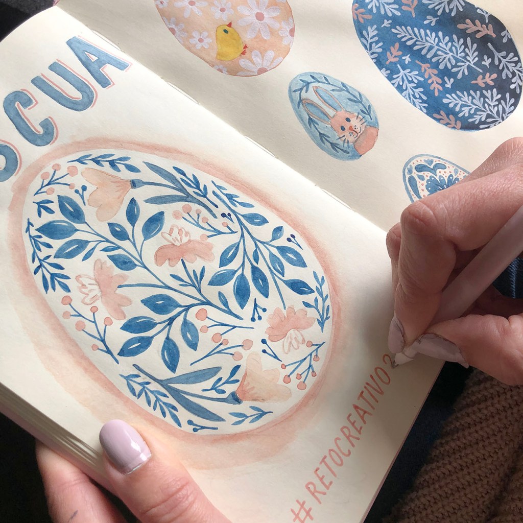 En este reto decoraremos nuestros huevos de Pascua de una forma más cómoda, que es sobre papel, en nuestro cuaderno. Deja volar tu imaginación y desata tu creatividad en este reto. Además te puede servir de ideas por si te animas a decorar o pintar un huevo real, aunque la versión en papel es mucho más cómoda y fácil, ya que es plano y podemos usar multitud de técnicas.
