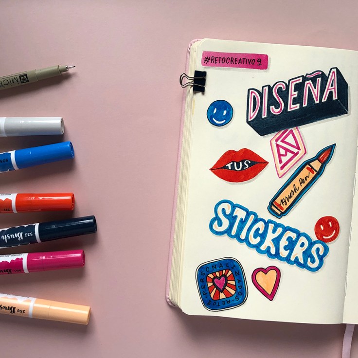 2- La creatividad FINAL, que será crear una bonita y variada colección de stickers con lettering que te representen y que cuenten un poco sobre ti (quien eres, que te gusta, que haces…). Los stickers serán letterings e ilustraciones y pueden ir acompañados de otros stickers decorativos secundarios.