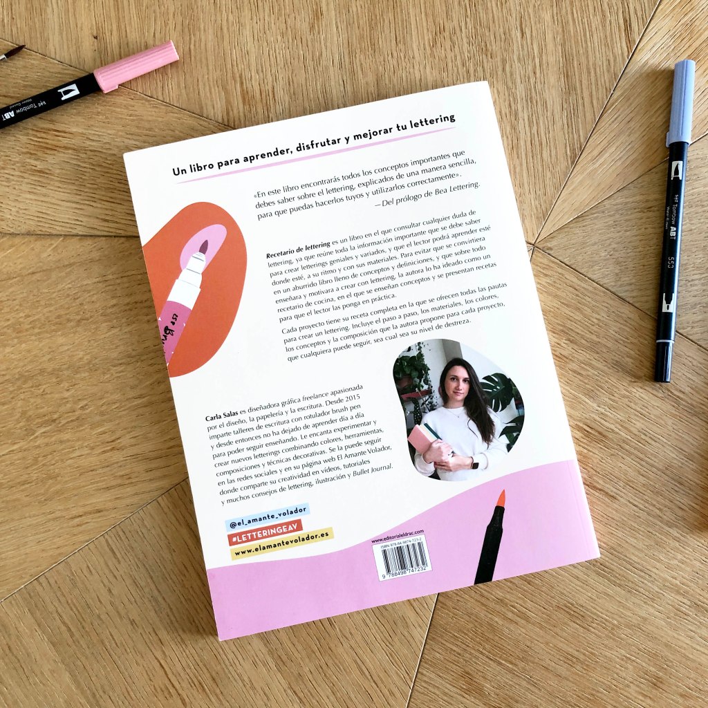 Recetario de lettering es un libro en el que consultar cualquier duda de lettering, ya que reúne toda la información importante que se debe saber para crear letterings geniales y variados, y que el lector podrá aprender esté donde esté, a su ritmo y con sus materiales. Para evitar que se convirtiera en un aburrido libro lleno de conceptos y definiciones, y que sobre todo enseñara y motivara a crear con lettering, la autora lo ha ideado como un recetario de cocina, en el que se enseñan conceptos y se presentan recetas