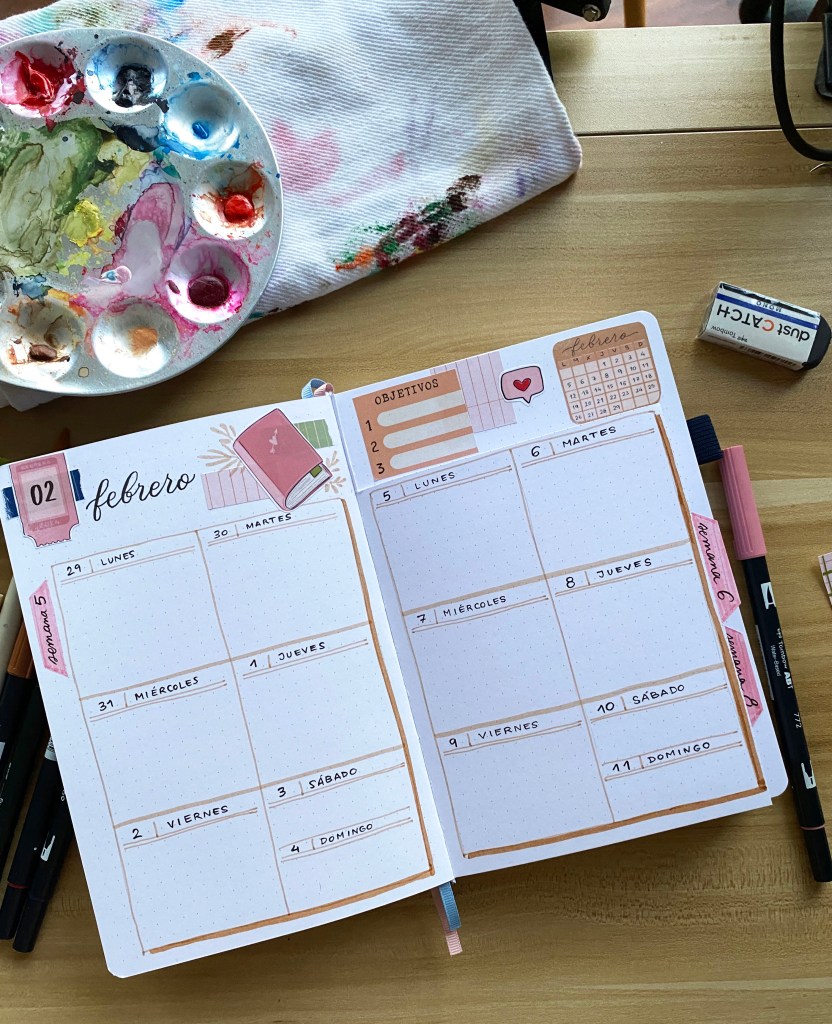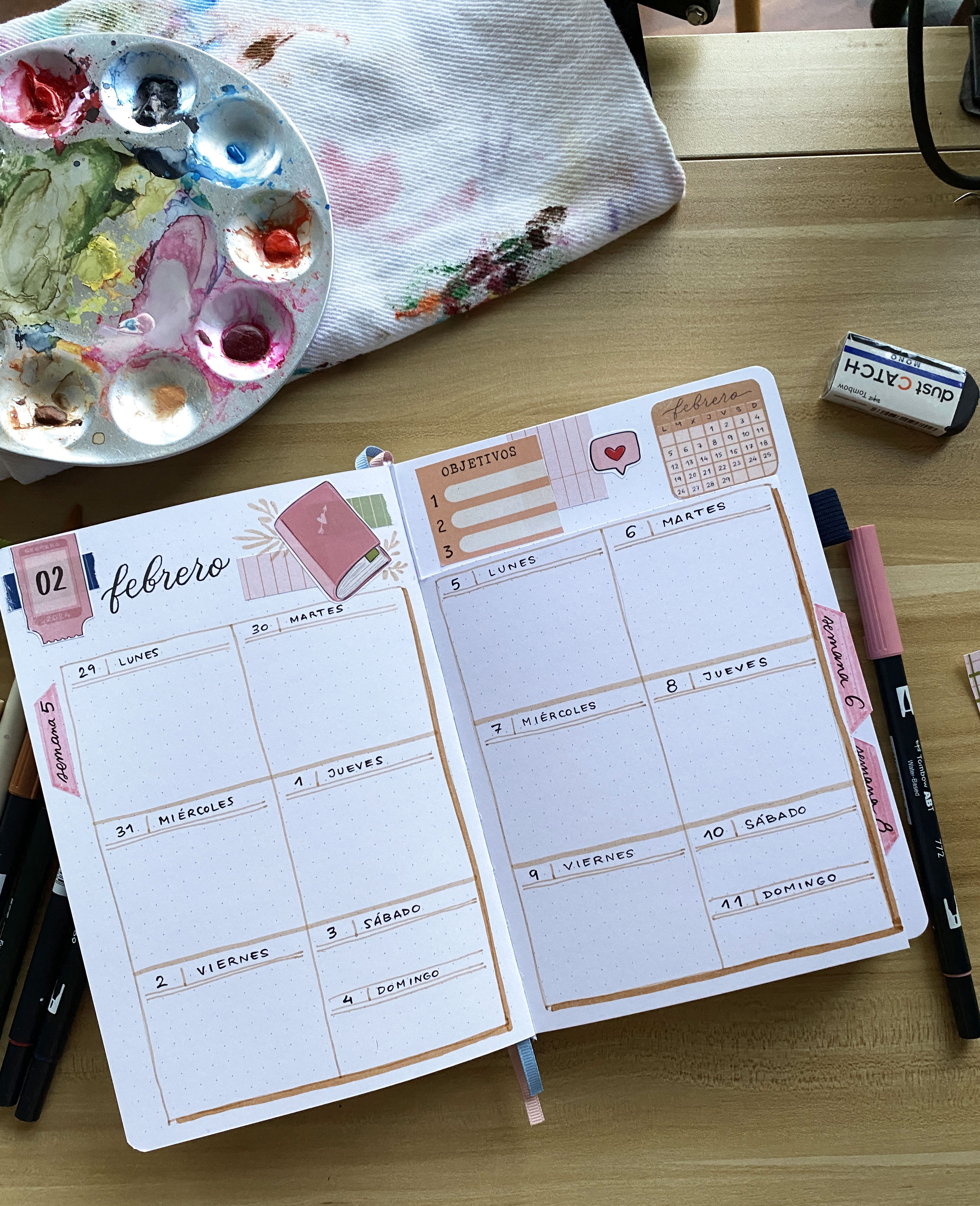 Ya estoy aquí con un nuevo mes preparado en mi Bullet Journal. Hoy te traigo doble diseño: enero, que no lo compartí, y febrero, que ya lo tengo listo para programar este mes y tener mi journal dispuesto a rellenarlo con tareas pendientes.